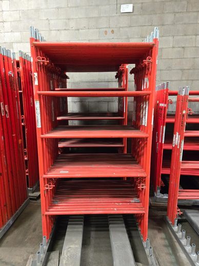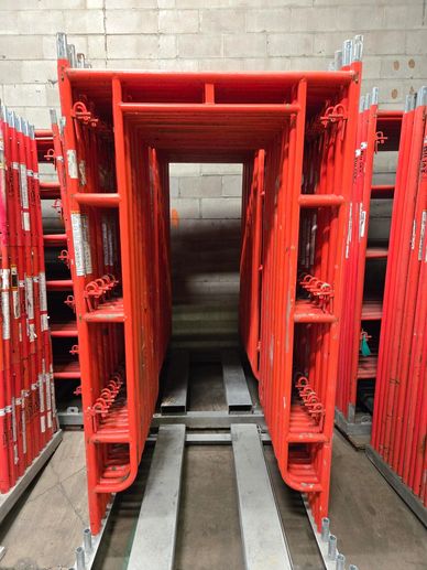Walk through frames are between a set of ladders allowing crews to work at each deck level. These are often used for overhead protection.