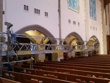 Even indoors you can find use for swing stages. Tall lobby's, large atriums, and hard to reach interior space can all be locations to set a swing stage.