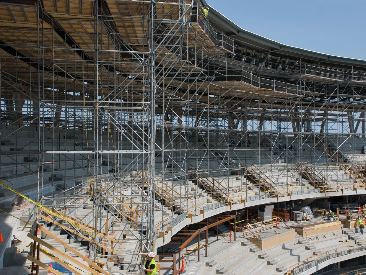 System scaffold is the answer when a lift can't get the job done. Its modular design adapts well to unique layouts, such as stadium seating.